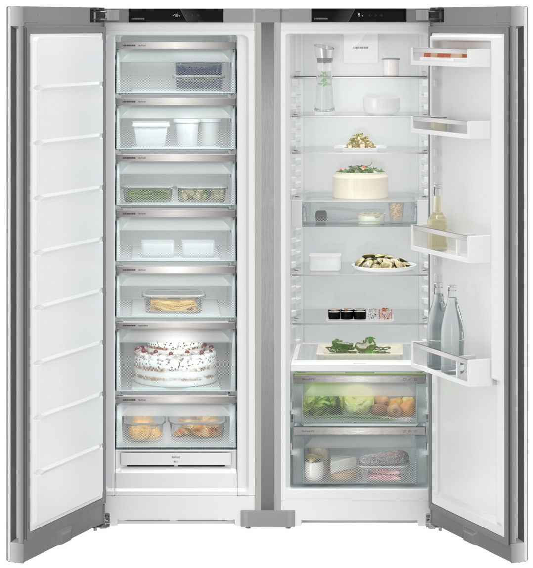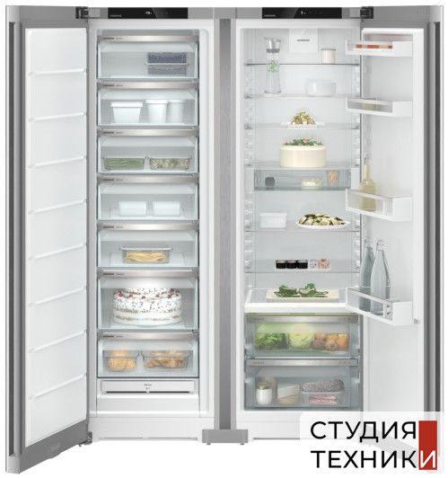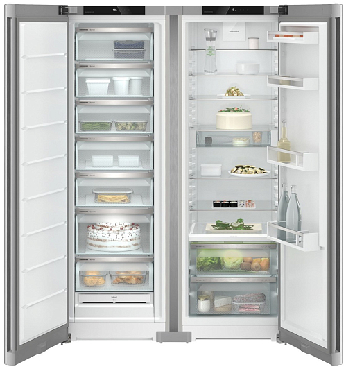 Холодильник Side-by-Side Liebherr XRFsf 5225Общие характеристики:- Тип: отдельностоящий- Вид: холодильник с морозильной камерой- Количество камер: 2- Количество компрессоров: 2- Разморозка холодильной камеры: автоматическое- Разморозка морозильной камеры: автоматическое- Полезный объем холодильной камеры: 377 л- Полезный объем морозильной камеры: 271 л- Цвет: серебристый- Уровень шума: 40 дБ- Класс энергетической эффективности: A+- Годовое потребление энергии: 306 кВтч/год- Размеры (ВхШхГ): 185.5х59.7х67.5 смУправление, функции:- Сенсорное управление- ЖК-дисплей монохромный, сенсорный экран- Индикатор температуры- Автоматическая функция SuperСool за 6 часов снижает температуру в холодильном пространстве до +2°C и служит для быстрого охлаждения вновь загруженных продуктов питания. Возврат в обычный режим происходит автоматически.- Система SuperFrost температура в морозильной камере быстро понижается до -32 °С, создавая таким образом «резерв холода», необходимый для замораживания продуктов при максимальном сохранении витаминов автоматическое отключение через 65 часов (макс.) - Функция «Отпуск»Холодильное отделение:- Светодиодное потолочное освещение- Регулируемый диапазон температур: от +3С до +9С- 8 полок из закаленного стекла, из них 7 регулируемые по высоте, 1 разделяемая полка- Контейнеры для фруктов и овощей: 2 - Ящики на частично выдвигаемых телескопических направляющих - Количество полок на двери для хранения бутылок: 2- Количество полок на двери для хранения консервов: 2- Лоток для яиц: 1Морозильное отделение:- Светодиодное освещение- Диапазон температур: от -15С до -28С- Время сохранения холода при отключении электроэнергии: 14 ч- Выдвижные контейнеры: 7 шт- Лоток для льда- Поднос для замораживанияДополнительная информация:- Возможность доукомплектовать холодильник SmartDeviceBox для системы умного дома- Ролики для транспортировки сзади- Комбинация из холодильной камеры SRBsfe 5220 Plus BioFresh, и морозильной камеры SFNsfe 5227 Plus NoFrostБезопасность:- Акустический сигнал открытой двери холодильной, камеры- Акустический сигнал открытой двери морозильной камеры- Акустический и оптический неисправности- Защита от детей Страна изготовитель:- Болгария