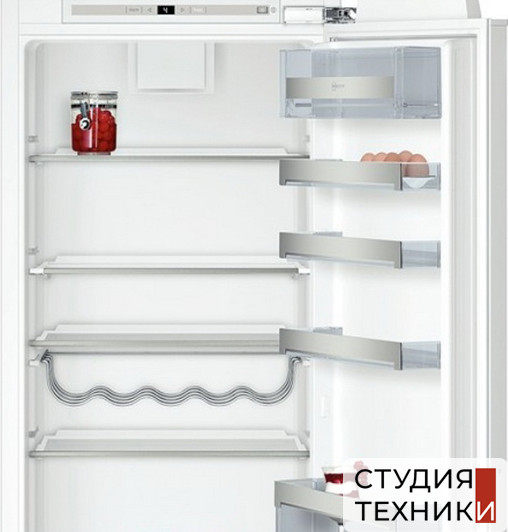 Общие характеристики:- Тип: встраиваемый- Вид: холодильник без морозильника- Количество камер: 1- Количество компрессоров: 1- Разморозка холодильной камеры: капельная (автоматическая)- Общий объем холодильника: 319 л- Цвет: белый- Уровень шума: 37 дБ- Класс энергетической эффективности: A+- Годовое потребление энергии: 116 кВтч/год- Мощность подключения: 0,9 кВт- Размеры (ВхШхГ): 177.2х55.8х54.5 см- Размеры встраивания (ВxШ xГ): 177.5x56x55 см Управление, функции:- Кнопочное управление с цифровым дисплеем- Электронная регулировка температуры- Функция суперохлаждения (температур в холодильной камере понижается до +2 С)- Технология VitaControl – поддержание постоянного уровня температуры Холодильная камера:- 7 полок из ударопрочного стекла, из них 6 – переставляемые по высоте- Зона свежести HydroFresh и бокс для овощей и фруктов на телескопических полозьях- Подвес для бутылок Дополнительная информация:- Led освещение- Угольный фильтр Страна изготовитель:- Германия