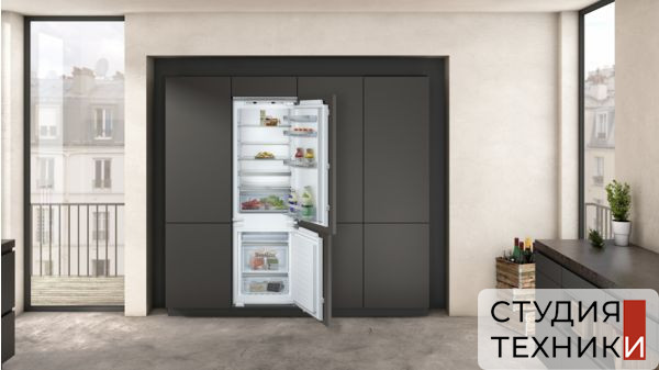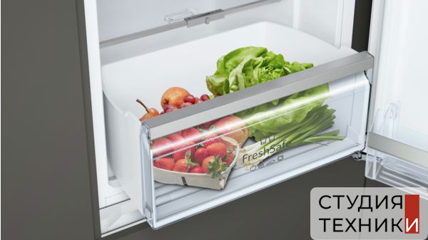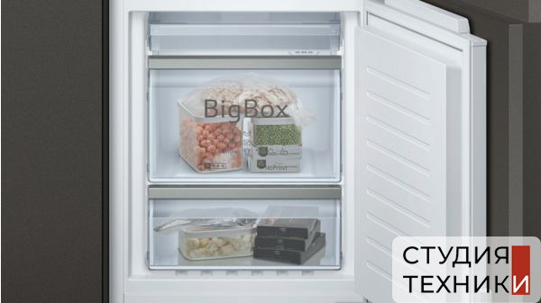 Холодильная камера:- 4 полки из ударопрочного стекла, из них одна с плавной регулировкой по высоте EasyLift- 2 дверные полки с плавной регулировкой по высоте EasyLift- Бокс для овощей и фруктов FreshSafe- Дверной контейнер с крышкой с технологией Slide & Hide- Светодиодное освещение- Режим суперохлаждения FastCool с автоматическим отключением Морозильная камера:- 3 прозрачных бокса, один из них BigBox- Режим суперзамораживания- Мощность замораживания 12 кг/ 24 ч.- Длительность хранения при отключении электроэнергии: 13 ч Дополнительная информация:- Плоский шарнир с интегрированными демпферами - мягкое и бесшумное закрытие дверей- Дверной упор правый, перенавешиваемый