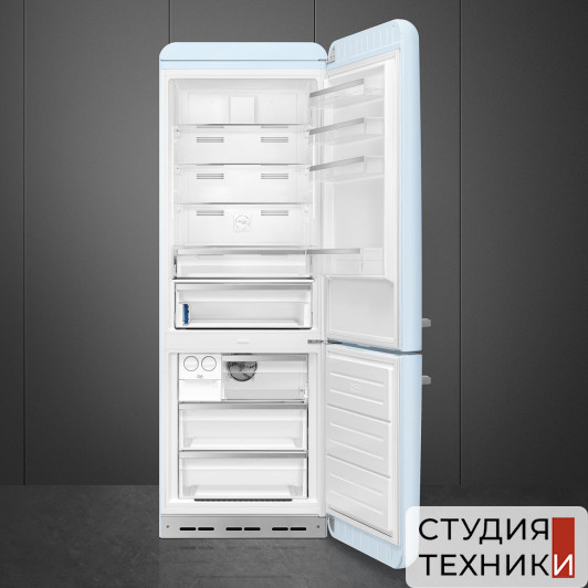 Общие характеристики:- Тип: отдельностоящий- Вид: холодильник с морозильником- Количество камер: 2- Количество компрессоров: 1- Разморозка холодильной камеры: No Frost- Разморозка морозильной камеры: No Frost- Общий объем холодильника: 481 л- Объем холодильной камеры: 344 л- Объем морозильной камеры: 137 л- Цвет: голубой- Количество дверей: 2- Дверной упор: справа- Уровень шума: 37- Класс энергетической эффективности: A+++- Климатический класс: SN-T- Размеры (ВхШхГ): 205х70.6х71.1 см