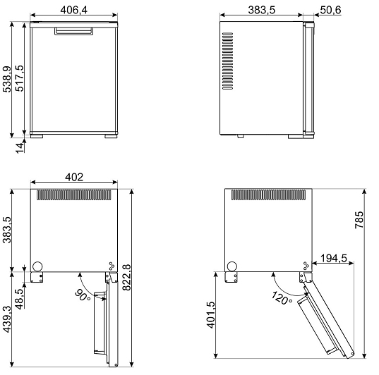 Общие характеристики:- Тип: отдельностоящий- Вид: холодильник без морозильника- Количество камер: 1- Количество компрессоров: 1- Разморозка холодильной камеры: автоматическая- Общий объем холодильника: 40 л- Цвет: черный- Количество дверей: 1- Дверной упор: справа- Годовое потребление энергии: 161 кВтч/год- Размеры (ВхШхГ): 53.9х40.6х43.3 см