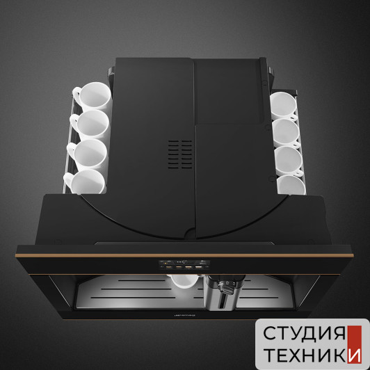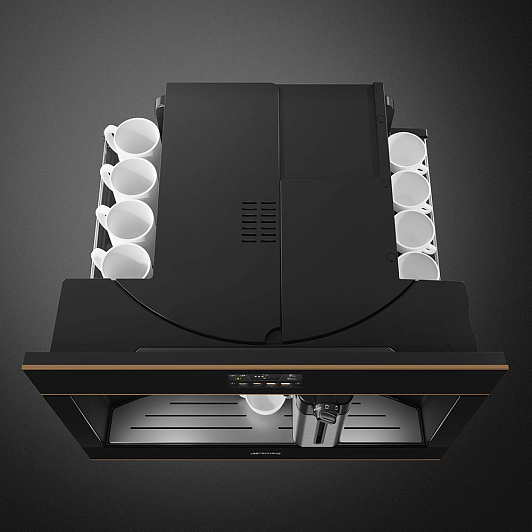 Общие характеристики:- Тип: встраиваемая- Вид: автоматическая- Цвет: черный- Цвет фурнитуры: медь- Кофе: зерновой/молотый- Отсек для кофейных зёрен объёмом: 350 г- Съемная емкость для залива воды объёмом: 2,4 л- Номинальная мощность: 1,35 кВт- Максимальное давление: 15 бар- Размеры (ВхШхГ): 45.5х59.5х47 см- Размеры для встраивания (ВхШхГ): 45х56х55 см