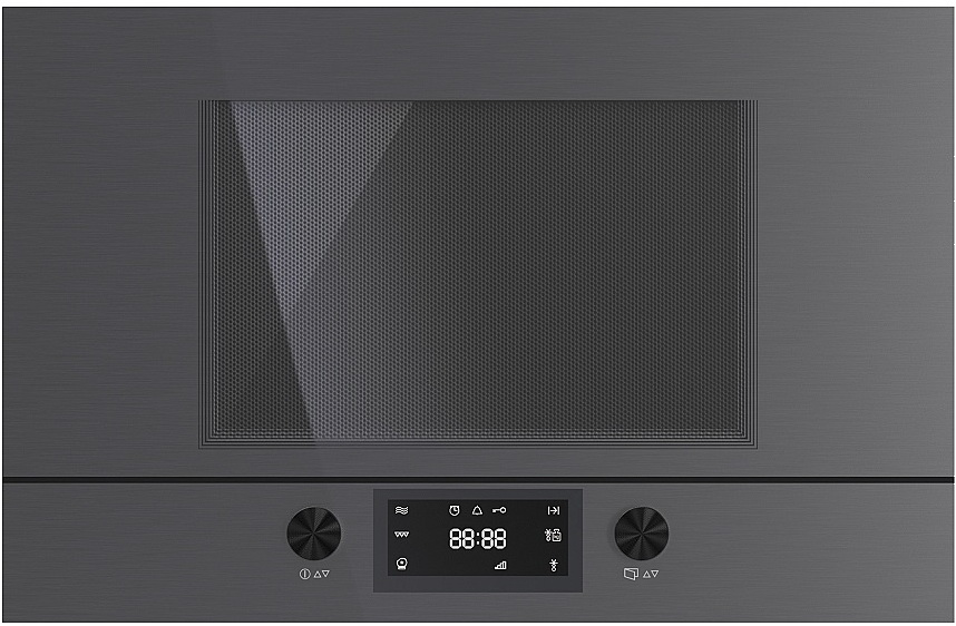 Технические характеристики:- Тип: встраиваемая - Цвет: серое стекло- Объем камеры: 22 л- Мощность микроволн: 850 Вт- Мощность гриля: 1200 Вт- Мощность подключения: 2,5 кВт- Размеры (ВхШхГ): 39х59.5х33.4 см- Размеры ниши для встраивания (ВхШхГ): 38х56.8х32 см