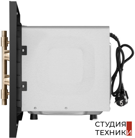 Общие характеристики:- Вид: встраиваемая- Установка: независимая- Дизайн: ретро- Цвет: черный- Цвет фурнитуры: матовое золото- Объем духовки: 20 л- Режимы приготовления: 4- Мощность СВЧ: 800 Вт- Номинальная мощность: 1,08 кВт- Размеры (ВхШхГ): 37.6х59.2х31 см- Размеры ниши для встраивания (ВхШхГ): 36.5х56х29.3 см