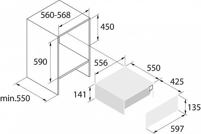 Подогреватель посуды ASKO ODW8128G Общие характеристики:- Тип: встраиваемый- Загрузка: 20 тарелок диаметром 28 см, 80 кофейных чашек, 40 чайных чашек- Цвет: антрацит- Материал камеры: нержавеющая сталь- Потребляемая мощность: 0,81 кВт- Размеры (ВхШхГ): 14х59.5х56.5 см- Размеры встраивания (ВхШхГ): 14х56-56.8х55 см