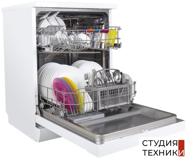 Общие характеристики:- Вид: полноразмерная- Тип: отдельностоящая- Цвет: белый- Вместительность: 12 комплектов посуды- Уровень шума: 52 дБ- Класс сушки: A- Класс энергопотребления: А+- Потребление энергии цикл: 0,75 кВт- Расход воды за цикл: 9 л- Мощность подключения: 2,1 кВт- Размеры (ВxШxГ): 84.5х59.8х60 см