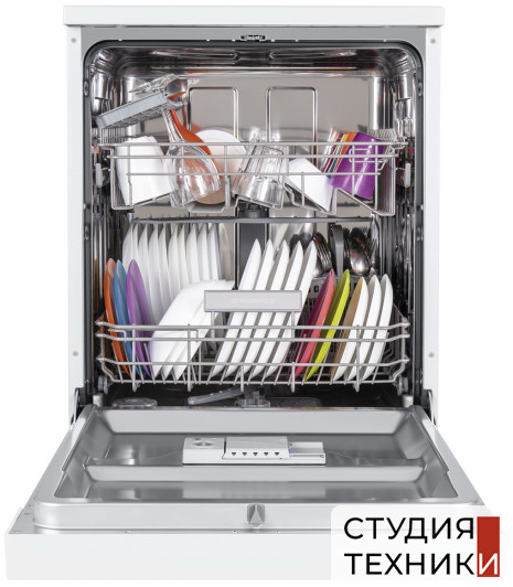 Общие характеристики:- Вид: полноразмерная- Тип: отдельностоящая- Цвет: белый- Вместительность: 12 комплектов посуды- Уровень шума: 52 дБ- Класс сушки: A- Класс энергопотребления: А- Потребление энергии цикл: 0,75 кВт- Расход воды за цикл: 11,5 л- Мощность подключения: 2,1 кВт- Размеры (ВxШxГ): 84.5х59.8х60 см