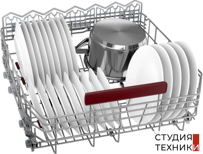 Комплектация:- Количество корзин: 3- Переставляемые короба VarioFlex- Переставляемый по высоте верхний короб- Третий уровень загрузки для столовых приборов- Корзина для столовых приборов в нижем коробе- Складные направляющие для тарелов в нижнем коробе- Полки для чашек эспрессо в нижнем коробе