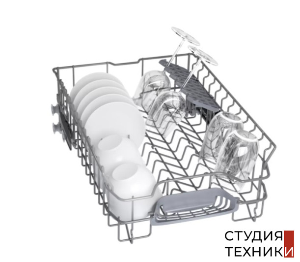 Комплектация:- Количество корзин: 3- Переставляемые короба VarioFlex- Переставляемый по высоте верхний короб- 3-й уровень загрузки для соловых приборов- Складные направляющие для тарелок в нижнем коробе- Полочки для чашек эспрессо в верхнем коробе