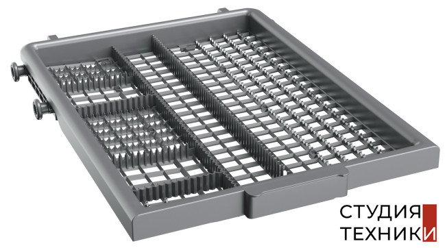 Особенности:- 3-ий разбрызгиватель, 3 корзины- Верхний лоток: стандартный для столовых приборов- Верхняя корзина: полугибкая FlexiSet1 – 1 складной фиксатор для маленьких или средних тарелок, стаканов и т.п., полочка для чашек, бокалов и металлическая ручка с логотипом- 3 уровня высоты установки верхней корзины при помощи системы Push-up- Нижняя корзина: полугибкая FlexiSet2 – 2 складных фиксатора и металлическая ручка с логотипом- MultiCleaner Sensor – посудомоечная машина автоматически распознаёт таблетки 3 в 1 без специальной функции- Инверторный двигатель- Микрофильтрация- Скрытый нагревательный элемент- Дверца и внутренняя камера из нержавеющей стали- Задние ножки регулируются спереди- Потребление энергии цикл/год: 0,719/201 кВт- Потребление воды цикл/год: 8,7/2436 л