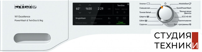 Управление:- Элементы управления: поворотный переключатель- Дисплей: ComfortSensor белый- Индикация завершения программы на дисплее и в мобильном приложении- WiFiConnect- Отсрочка старта до 24 часов- Индикация остаточного времени- Индикация дозировки моющего средства- Зуммер