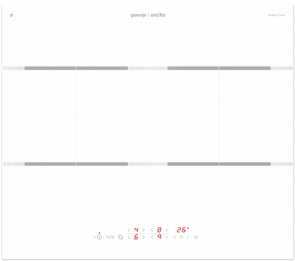 Общие характеристики:- Тип: индукционная- Установка: независимая- Дизайн: Ora-Ito- Цвет: белый- Рабочая поверхность: стеклокерамика- Количество зон нагрева: 4- Рамка: без рамки- Мощность потребления: 7,4 кВт- Размеры (ВхШхГ): 5.4х59.5х52 см - Размеры для встраивания (ШхГ): 56х49 см Управление:- Сенсорное управление SmartControl- Таймер- Дисплей- Звуковой сигнал- Индикаторы остаточного тепла для каждой конфорки