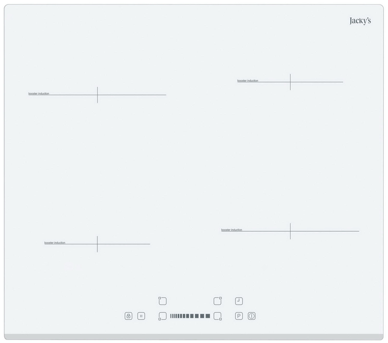 Общие характеристики:- Тип: индукционная- Материал: стеклокерамика- Установка: независимая- Цвет: белый- Рамка: скошенный край- Количество зон нагрева: 4 шт- Потребляемая мощность: 7,4 кВт- Размеры (ВхШхГ): 5.6х59х52 см- Размеры ниши для встраивания (ШхГ): 56х49 см