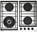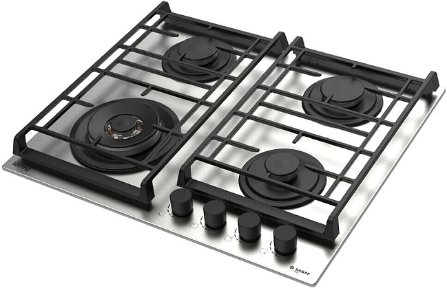 Общие характеристики:- Тип: газовая- Установка: независимая- Материал: нержавеющая сталь- Количество зон нагрева: 4 шт- Цвет: нержавеющая сталь- Цвет фурнитуры: черный- Размеры (ВхШхГ): 46х58х51 см- Размеры ниши для встраивания (ВхШхГ): 30х56х49 см- Вес: 10 кг