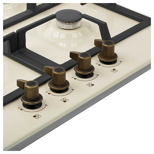 Общие характеристики:- Тип: газовая- Установка: независимая- Материал: закаленное стекло- Количество зон нагрева: 4 шт- Цвет: слоновая кость- Цвет фурнитуры: нержавеющая сталь- Размеры (ВхШхГ): 50х59х52.2 см- Размеры ниши для встраивания (ВхШхГ): 30х56.5х49 см- Вес: 12,2 кг