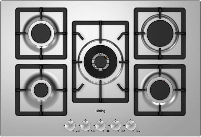 Технические характеристики зон нагрева:- Тип конфорок: 5 газовые- Центральная конфорка: 4 кВт- Задняя левая конфорка: 1,75 кВт- Передняя левая конфорка: 1 кВт- Задняя правая конфорка: 3 кВт- Передняя правая конфорка: 1,75 кВт- Сверхмощная конфорка WOK: приготовление блюд становится еще более быстрым, а нагрев посуды равномерным. Korting установил в свои модели сверхмощную конфорку с тремя рядами пламени для более быстрого приготовления. Экономьте свое время с Korting. К тому же сверхмощная конфорка WOK поможет вам приготовить изысканные блюда восточной кухни