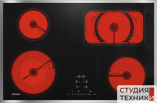 Управление:- Регуляторы мощности: сенсорные ComfortSelect с желтой подсветкой цифр- Регулировка мощности: 9-ступенчатая- Выбор мощности на цифровой шкале для всех конфорок- Цифровой дисплей - Таймер до 99 минут- Таймер конфорок (с акустическим и звуковым сигналом)- Отключение варочной поверхности с функцией обратного отчета работы- Расположение панели управления: фронтальное- Индикация включения- Индикация уровня мощности- Трехступенчатый индикатор остаточного тепла покажет, что конфорка еще горячая и на ней можно подогреть блюдо или растопить масло и шоколад