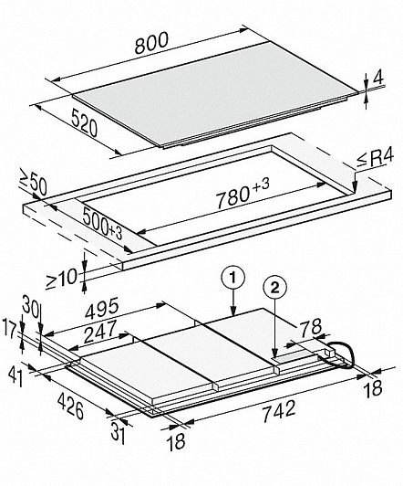 Общие характеристики:- Тип: индукционная- Материал: стеклокерамика- Установка: независимая- Способ подключения: электрическая- Цвет: черный- Количество зон нагрева: 4 шт- Рамка: вровень со столом- Мощность подключения: 11 кВт кВт- Размеры (ВхШхГ): 5.1х80х52 см - Размеры ниши для встраивания (ШхГ): 78х50 см