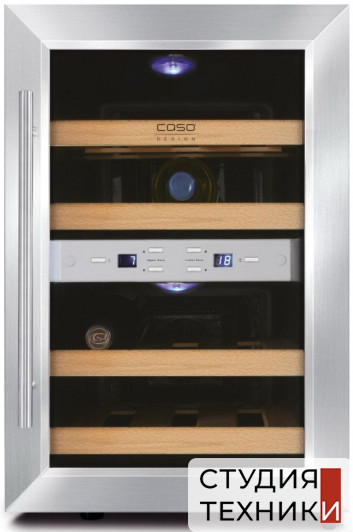 ВИННЫЙ ШКАФ CASO WINEDUETT 12Общие характеристики:- Тип: отдельностоящий- Вид: двухзонный- Температурный режим: 7-18 С- Верхняя зона: +7 до +18 С- Нижняя зона: +10 до +18 С- Количество дверей: 1- Количество камер: 1- Вместимость бутылок (0.75 л): 12 шт- Цвет: нержавеющая сталь- Класс энергопотребления: В- Уровень шума: 46 дБ- Потребляемая энергия в год: 183 кВт/год- Система охлаждения: Peltier- Размеры (ВхШхГ): 52.5x34.5x51 смУправление:- Элементы управления: сенсорные кнопки- Цифровой дисплей с отображением температуры- LED подсветка синего цвета- Индикация включенияОтделение для хранения вина:- Двойное стекло с защитой от УФ-лучей- Рама двери из нержавеющей стали- 4 полки из дерева - Полки выдвижныеДополнительные характеристики:- Дверной упор: справа- Перенавешиваемая дверь- Разморозка автоматическая- Навесная ручка двериСтрана изготовитель:- Германия