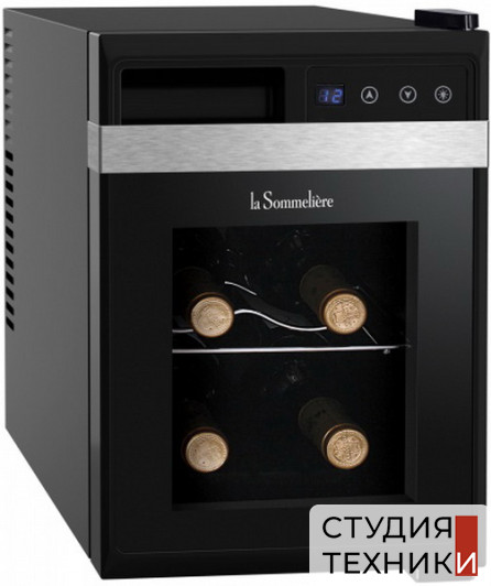 Общие характеристики:- Тип: отдельностоящий- Вид: однозонный- Количество дверей: 1 - Количество камер: 1- Вместимость бутылок (0.75 л): 6 шт- Цвет: черный/серебристый- Класс энергопотребления: F- Климатический класс: N (+16С до + 32С)- Уровень шума: 38 дБ- Система охлаждения: на элементах Пельтье- Размеры (ВхШхГ): 49.5х40.5х8 см
