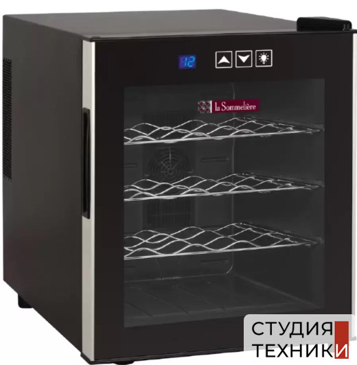 Общие характеристики:- Тип: отдельностоящий- Вид: однозонный- Количество дверей: 1 - Количество камер: 1- Вместимость бутылок (0.75 л): 16 шт- Цвет: черный- Класс энергопотребления: С- Климатический класс: N (+16С до + 32С)- Уровень шума: 38 дБ- Потребляемая энергия в год: 188 кВт/год- Система охлаждения: на элементах Пельтье- Размеры (ВхШхГ): 43.5х48х51 см