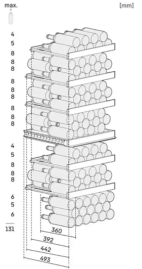 | Вместимость бутылок 0,75л: | 131 шт. |
