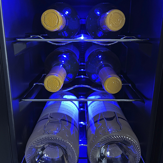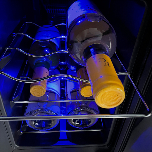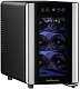 Общие характеристики:- Тип: отдельностоящий- Вместимость, бут. 0,75л: 6 шт- Общий объем: 18 л- Количество температурных зон: 1- Диапазон регулировки температуры: от +8 до +18С- Цвет: нержавеющая сталь/ черный- Уровень шума: 25 дБ- Класс энергетической эффективности: А- Размеры (ВхШхГ): 47.5х36.6х59.5 см Управление, функции:- Электронный термостат- Цифровой дисплей температуры- LED освещение