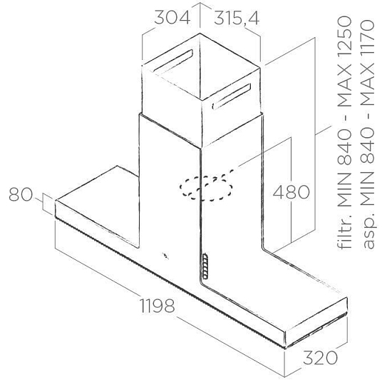 Дополнительная информация: - Жироулавливающий алюминиевый фильтр, пригодный для мытья в посудомоечной машине- Угольный фильтр (приобретается отдельно)- Светодиодное освещение 1х7 Вт- Диаметр воздуховода 150 мм- Декоративный дымоход в комплекте- Минимальная высота над газовой плитой: 650 мм - Минимальная высота над электрической плитой: 600 мм