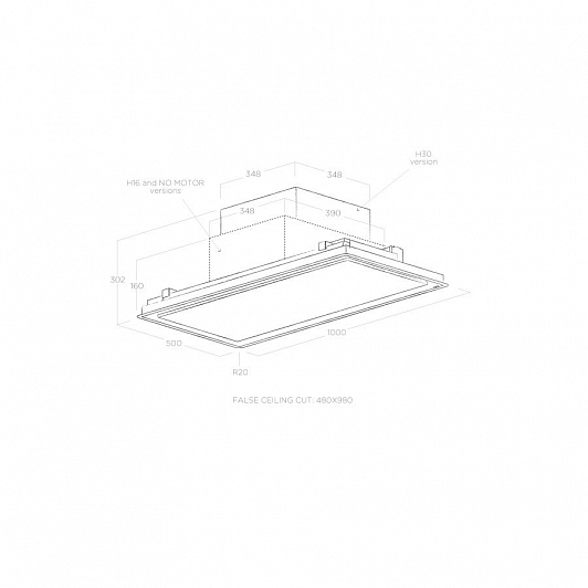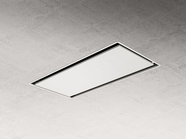 Общие характеристики:- Тип: островная- Монтаж: потолочный- Режим работы: отвод/рециркуляция - Уровень шума: 48/75 дБ- Цвет: фасад вытяжки под покраску- Материал передней панели: белая рамка- Максимальная производительность: 1200 м.куб/ч- Мощность подключения: 0,198 кВт- Класс энергоэффективности: А- Размеры (ВхШхГ): 16х100х50 см