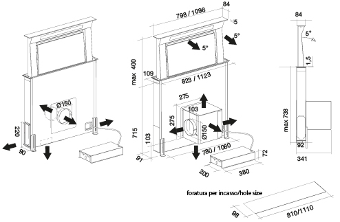 Общие характеристики:- Тип: встраиваемая- Тип установки: встраиваемая в шкаф- Режим работы: отвод/циркуляция - Уровень шума: 40/65 дБ- Цвет: белое стекло- Максимальная производительность: 800 м.куб/ч- Мощность подключения: 0.230 кВт- Размеры (ВхШхГ): 71.5-111.5х112.3х10.9 см Управление:- Сенсорное управление - Элементы управления: сенсор + "leaf sensor"- Количество скоростей: 4- Интенсивный режим- Таймер интенсивного режима