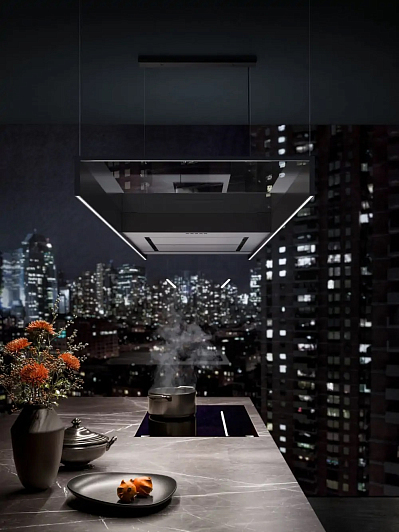 Общие характеристики:- Тип: островная- Монтаж: потолочный- Режим работы: рециркуляция - Уровень шума: 43/67 дБ- Цвет: черный- Максимальная производительность: 500 м.куб/ч- Размеры (ВхШхГ): 50-250х120х60см Управление: - Элементы управления: кнопки- Расположение элементов управления: фронтальное- Пульт ДУ в комплекте- Количество скоростей: 4+интенсивный режим- Отсрочка (таймер) выключения- Индикация обслуживания фильтров