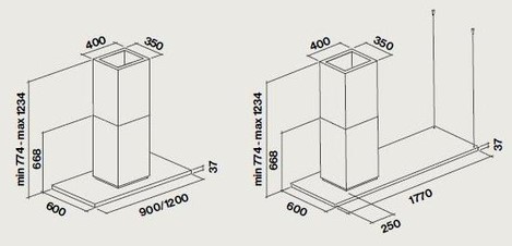 Общие характеристики:- Тип: островная- Монтаж: потолочный- Режим работы: отвод/рециркуляция - Уровень шума: 48-53 дБ- Цвет: нержавеющая сталь- Материал корпуса: нержавеющая сталь- Максимальная производительность: 1280 м.куб/ч- Размеры (ВхШхГ): 77.4-123.4х120х60 см- Диаметр воздуховода: 150 мм- Мощность подключения: 350 Вт