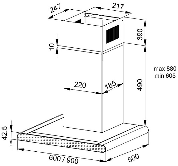Дополнительная информация:- Жироулавливающий алюминиевый фильтр, пригодный для мытья в посудомоечной - Led освещение: 1х2 Вт- Антивозвратный клапан- Декоративный короб в комплекте- Длина сетевого шнура: 1.5 м