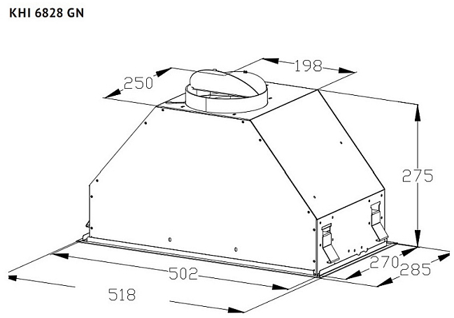 Общие характеристики:- Тип: полновстраиваемая- Монтаж: в шкаф- Режим работы: отвод/рециркуляция- Уровень шума: 57 дБ- Цвет: черный- Максимальная производительность: 850 м.куб/ч- Количество двигателей: 1- Потребляемая мощность: 192 Вт- Диаметр воздуховода: 150/120 мм- Размеры (ВхШхГ): 27.5х51.8х28.5 см