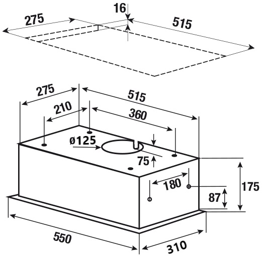 Общие характеристики: - Тип: встраиваемая- Установка: в шкаф- Режим работы: отвод/рециркуляция- Цвет: черный/нержавеющая сталь- Уровень шума: 53 дБ- Максимальная производительность: 303 м.куб/ч- Размеры (ВхШхГ): 17.5х55х29 см