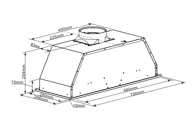 Общие характеристики:- Тип: встраиваемая в шкаф- Режим работы: отвод/рециркуляция- Уровень шума: 48 дБ- Цвет: нержавеющая сталь- Материал передней панели: нержавеющая сталь- Максимальная производительность: 850 м.куб/ч- Максимальная мощность: 121 Вт- Диаметр воздуховода: 120 мм- Размеры (ВхШхГ): 25.4х70х29.6 см