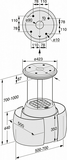 Общие характеристики: - Тип: островная- Режим работы: циркуляция - Уровень шума: 73 дБ- Цвет: белый- Максимальная производительность: 600 м.куб/ч- Потребляемая мощность: 130 Вт - Размеры (ВхШхГ): 70-100х50-70х50см