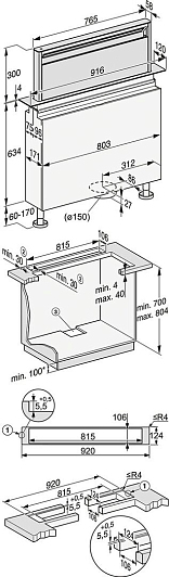 Общие характеристики:- Вид: вытяжка встраиваемая в столешницу- Цвет: черный- Режим работы: отвод/рециркуляция- Производительность: 640 м3/ч- Уровень шума: 63 дБ- Потребляемая мощность: 170 Вт- Размеры (ВхШхГ): 30х91.6х17 см