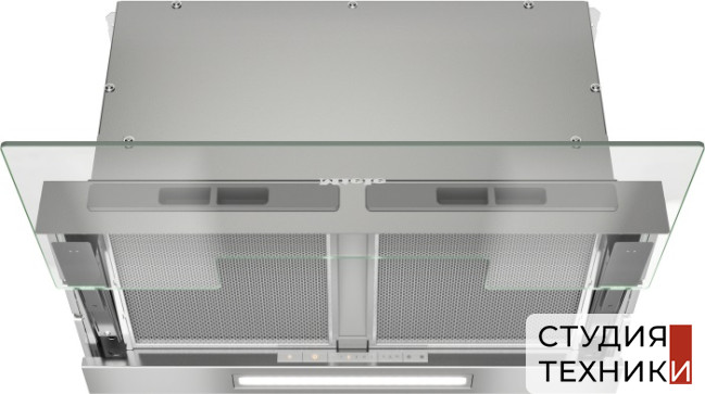 Общие характеристики: - Тип: встраиваемая в шкаф- Режим работы: отвод/циркуляция - Уровень шума: 38/70 дБ- Цвет: нержавеющая сталь/прозрачное стекло- Максимальная производительность: 600 м.куб- Размеры в режиме отвода воздуха (ВхШхГ): 6.8х56.1х30.7 см- Диаметр воздуховода: 150 мм  Управление: - Электронное - Элементы управления: сенсорные кнопки EasySwitch- Количество скоростей 3- Интенсивный режим- Таймер
