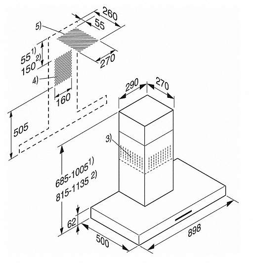 - Возможны разные варианты размеров вытяжки (высота, ширина и глубина) по специальному заказу